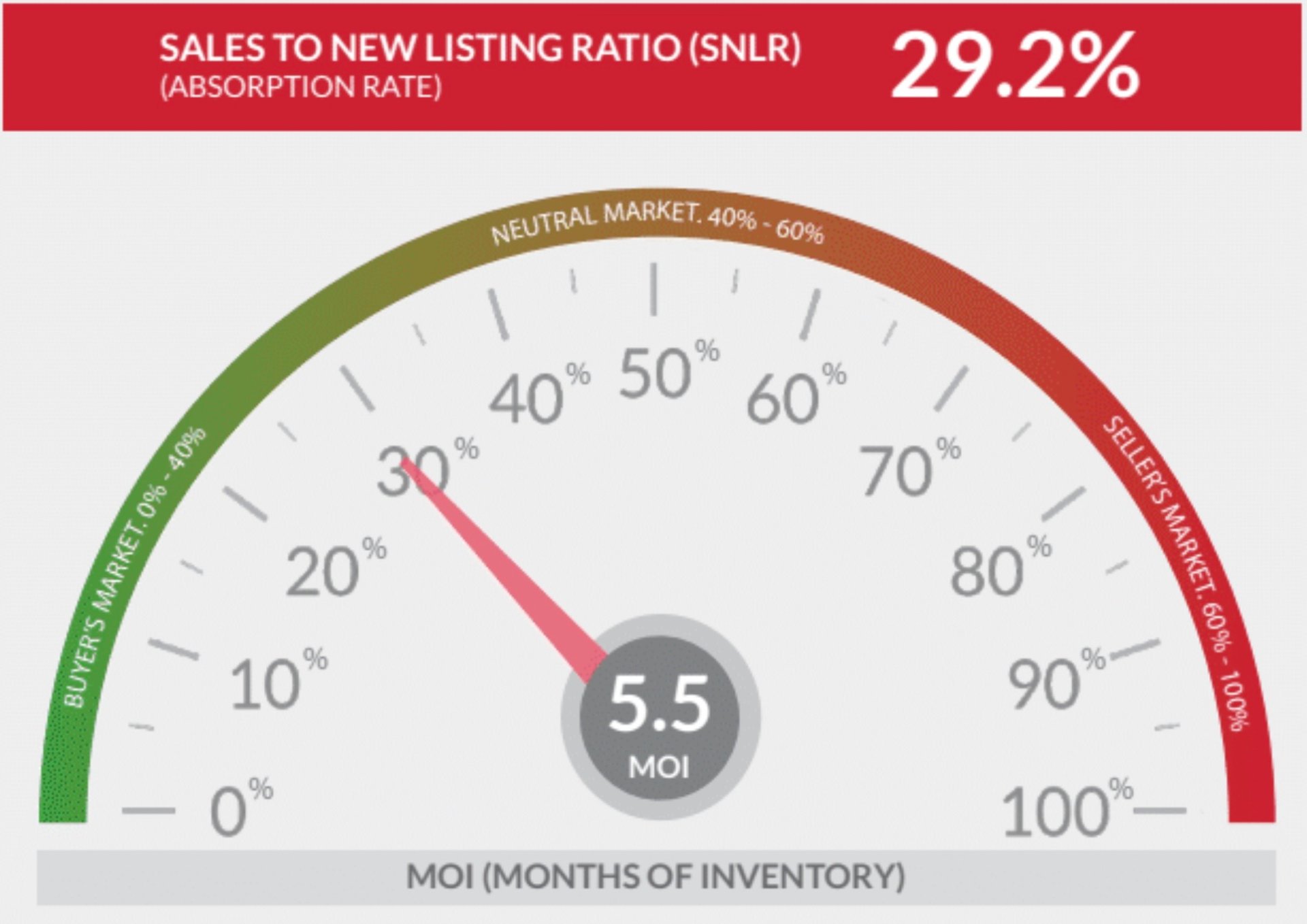 In November, Oakville all home types SNLR (Sales to New Listings Ratio) is 38.6%. It’s getting close to a balanced market.