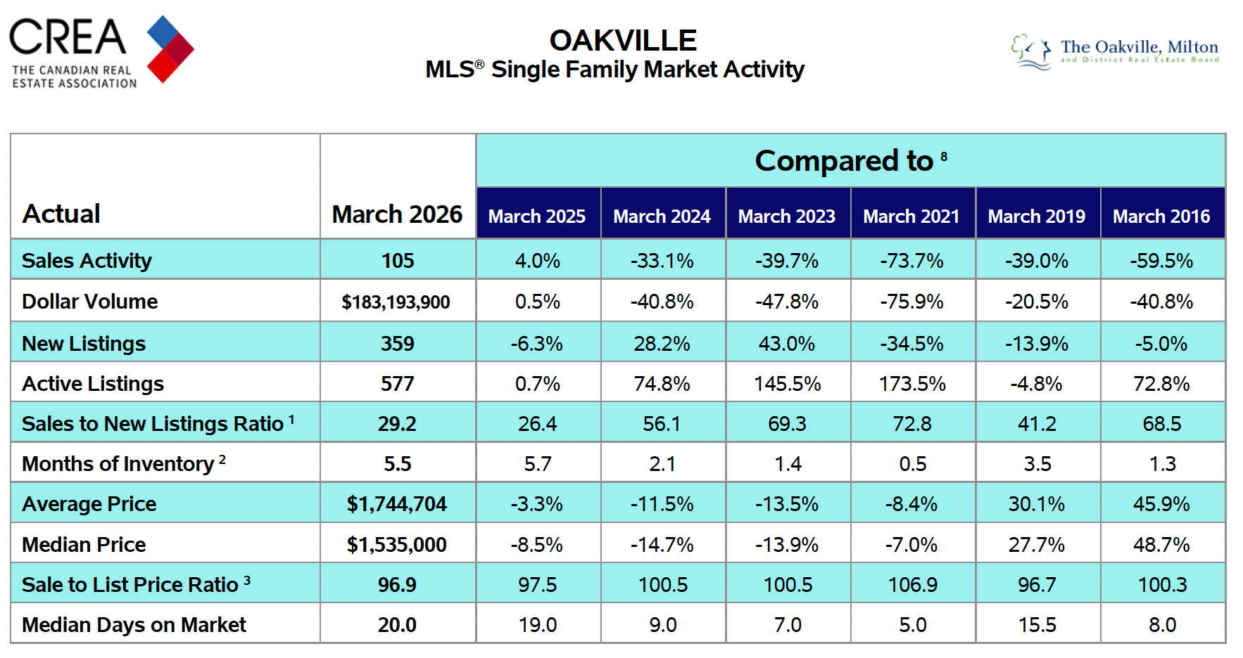 Oakville single family home market Year over Year comparison: